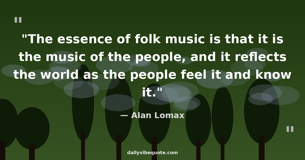 "The essence of folk music is that it is the music of the people, and it reflects the world as the people feel it and know it."