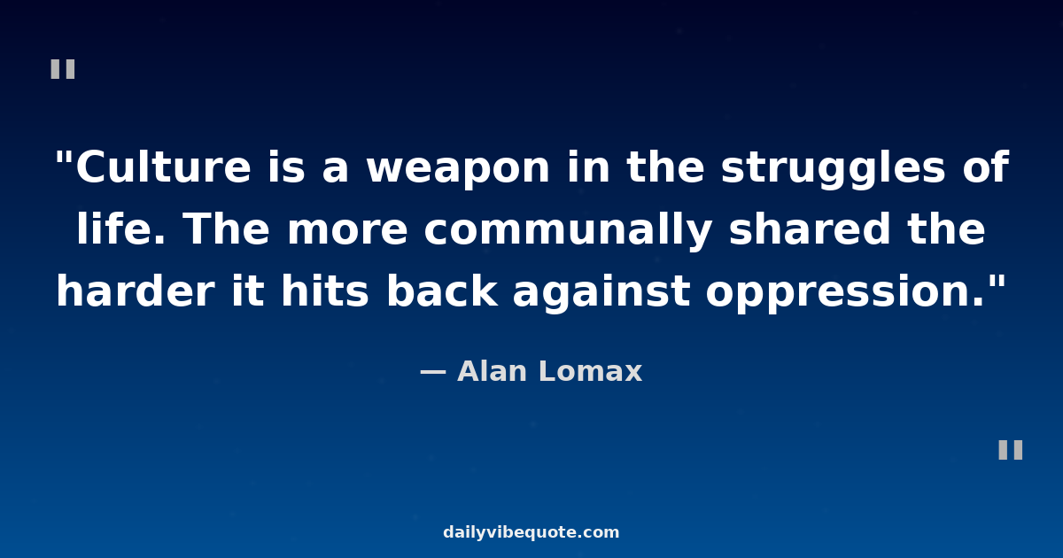"Culture is a weapon in the struggles of life. The more communally shared the harder it hits back against oppression."