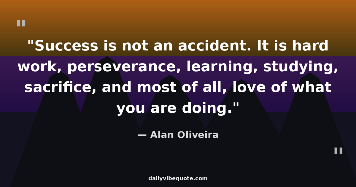 "Success is not an accident. It is the result of hard work, perseverance, learning, studying, sacrifice, and most of all,..."