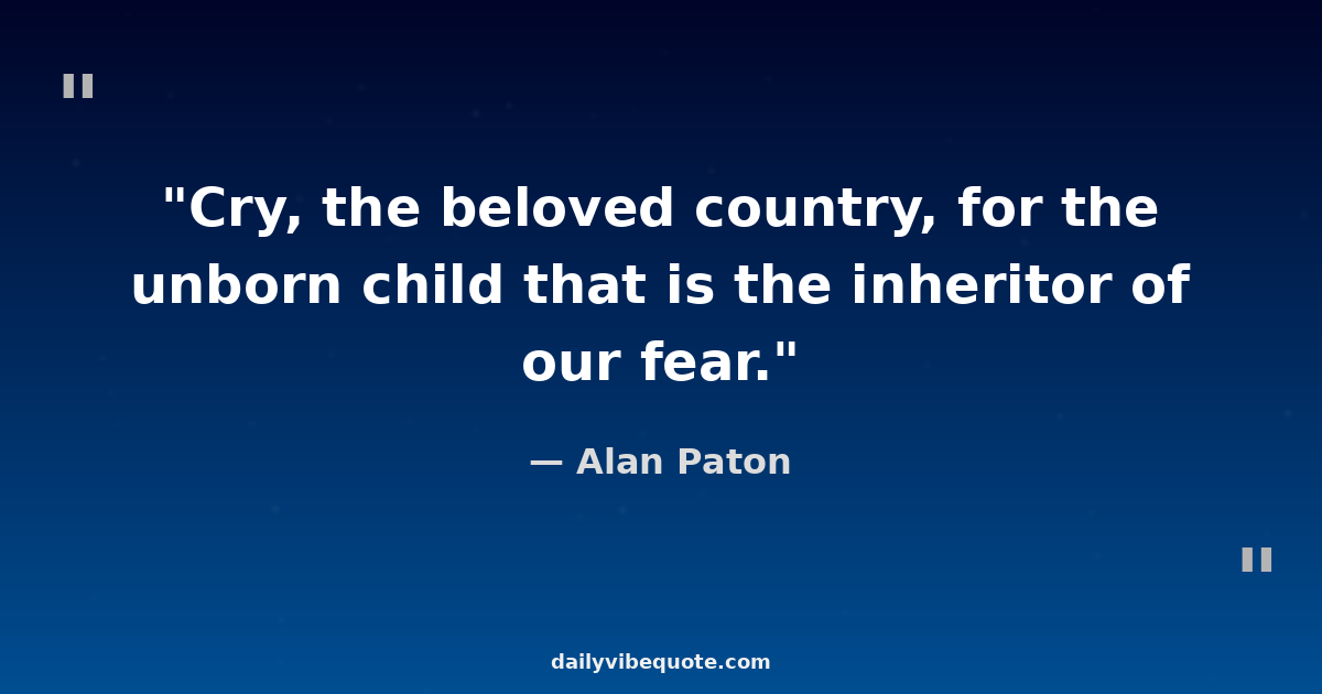 "Cry, the beloved country, for the unborn child that is the inheritor of our fear."