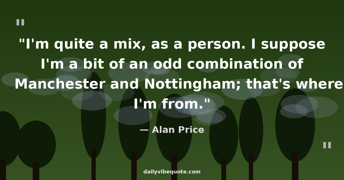 "I'm quite a mix, as a person. I suppose I'm a bit of an odd combination of Manchester and Nottingham; that's where I'm from."