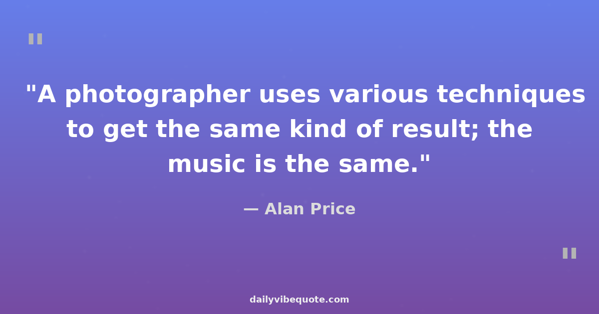 "A photographer uses various techniques to get the same kind of result; the music is the same."