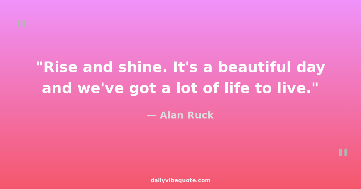 "Rise and shine. It's a beautiful day and we've got a lot of life to live."