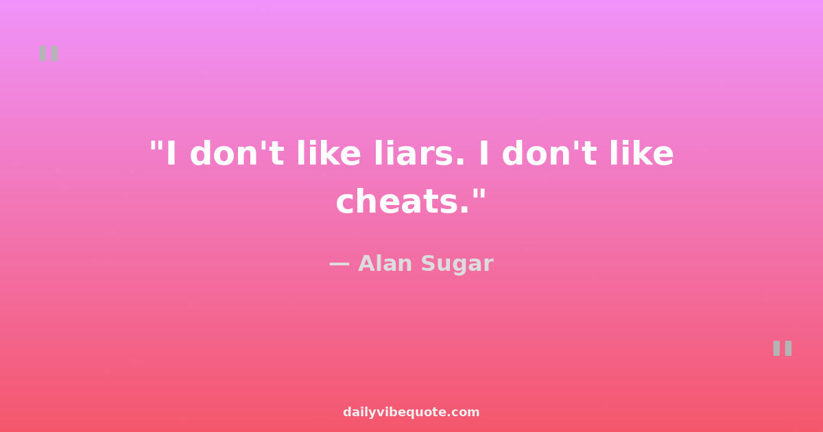 "I don't like liars. I don't like cheats."