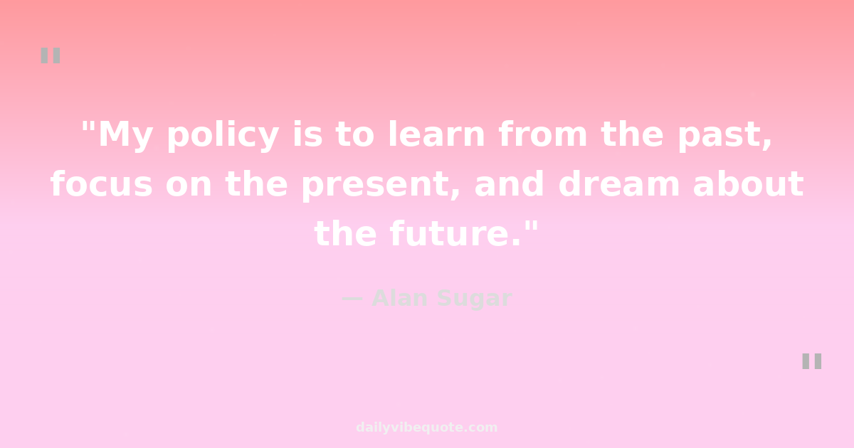"My policy is to learn from the past, focus on the present, and dream about the future."