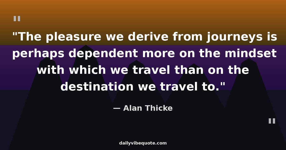 "The pleasure we derive from journeys is perhaps dependent more on the mindset with which we travel than on the destination we travel to."