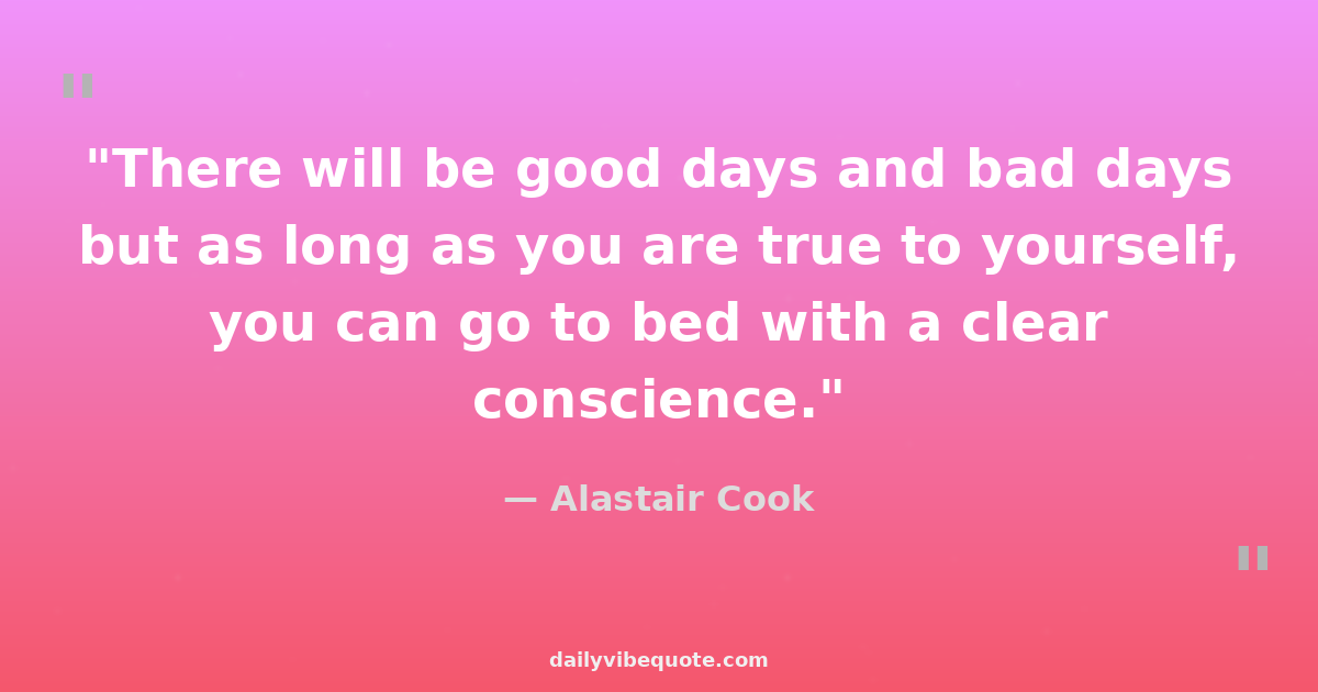 "There will be good days and bad days but as long as you are true to yourself, you can go to bed with a clear conscience."