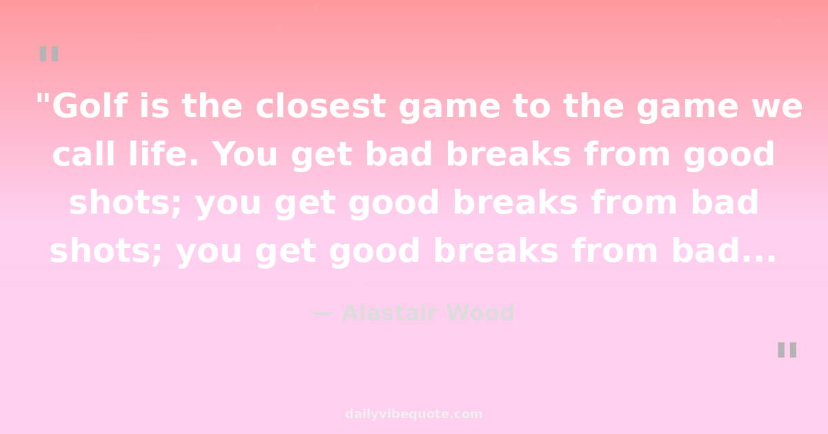 "Golf is the closest game to the game we call life. You get bad breaks from good shots; you get good breaks from bad shots - but you have to play the ball where it lies."