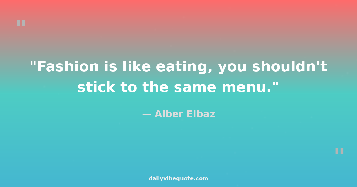 "Fashion is like eating, you shouldn't stick to the same menu."