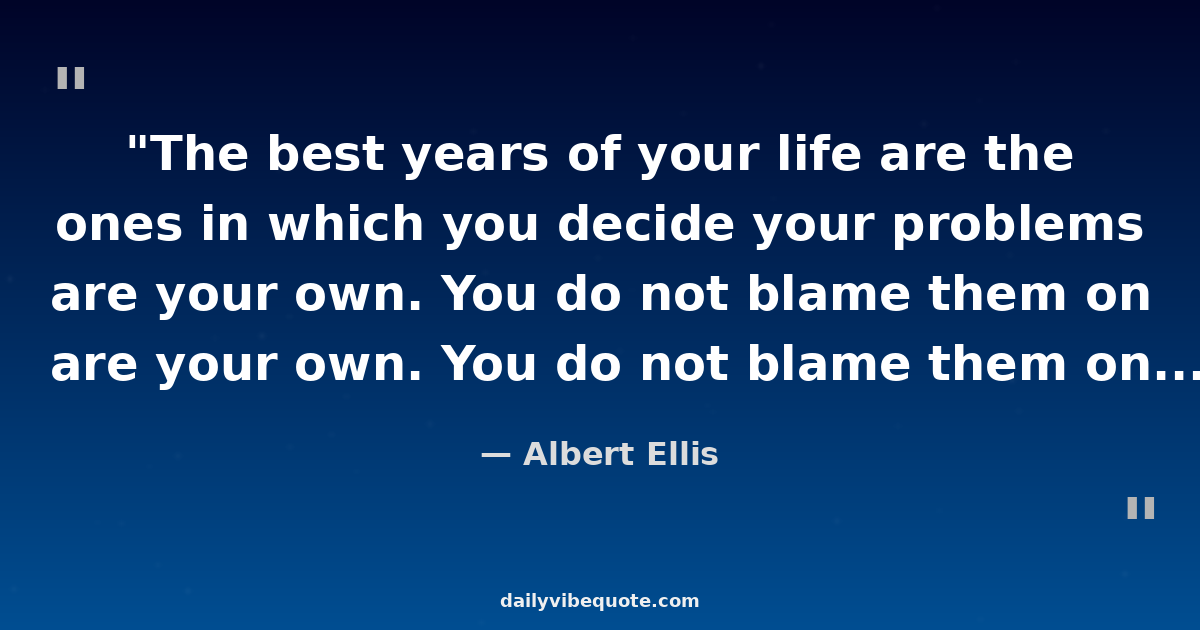 "The best years of your life are the ones in which you decide your problems are your own. You do not blame them on your mother, the ecology, or the president. You realize that you control your own destiny."