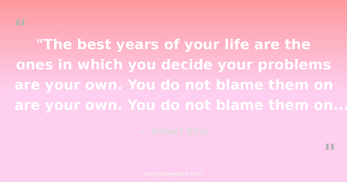 "The best years of your life are the ones in which you decide your problems are your own. You do not blame them on your mother, the ecology, or the president. You realize that you control your own destiny."
