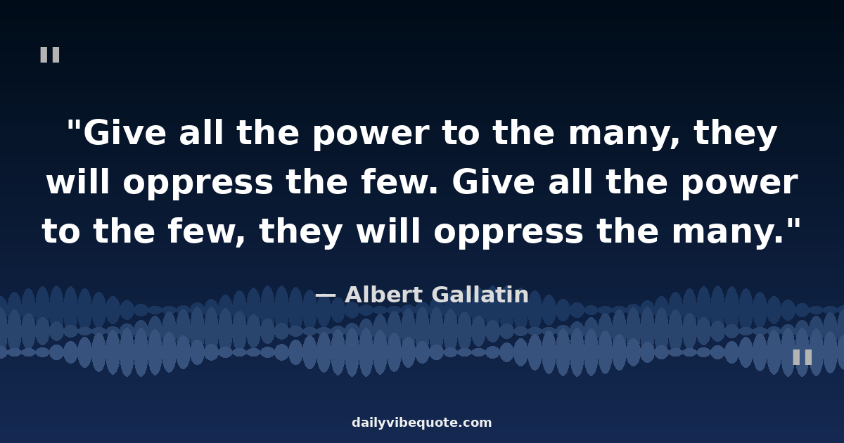"Give all the power to the many, they will oppress the few. Give all the power to the few, they will oppress the many."