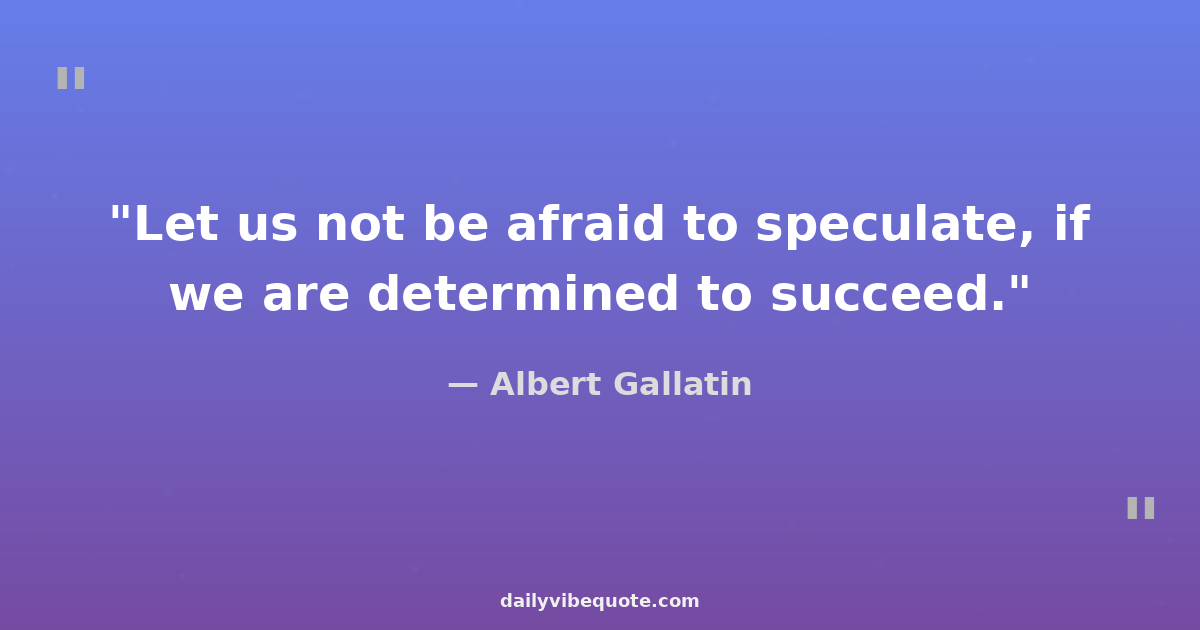 "Let us not be afraid to speculate, if we are determined to succeed."