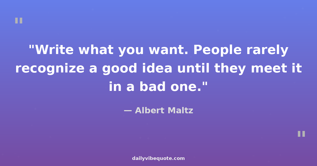 "Write what you want. People rarely recognize a good idea until they meet it in a bad one."