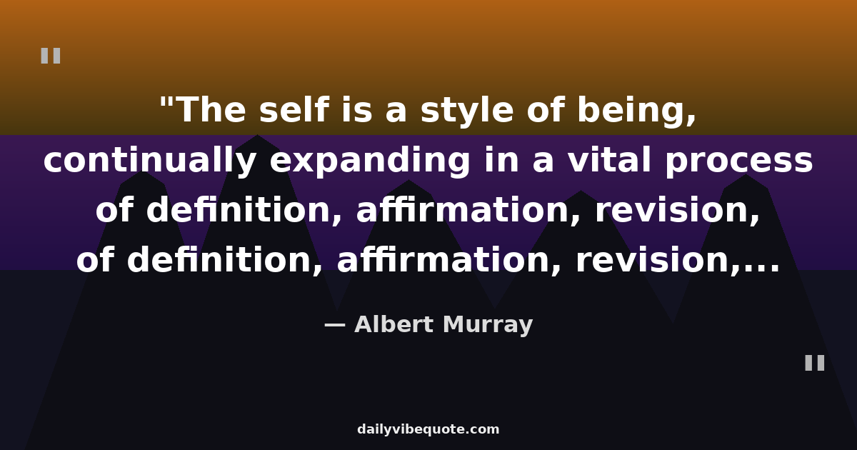 "The self is a style of being, continually expanding in a vital process of definition, affirmation, revision, and growth, a process that won’t be rushed, imposed on or accelerated."