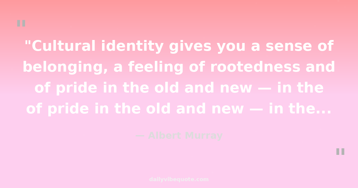 "Cultural identity gives you a sense of belonging, a feeling of rootedness and of pride in the old and new — in the manner where you are moving through time and space."