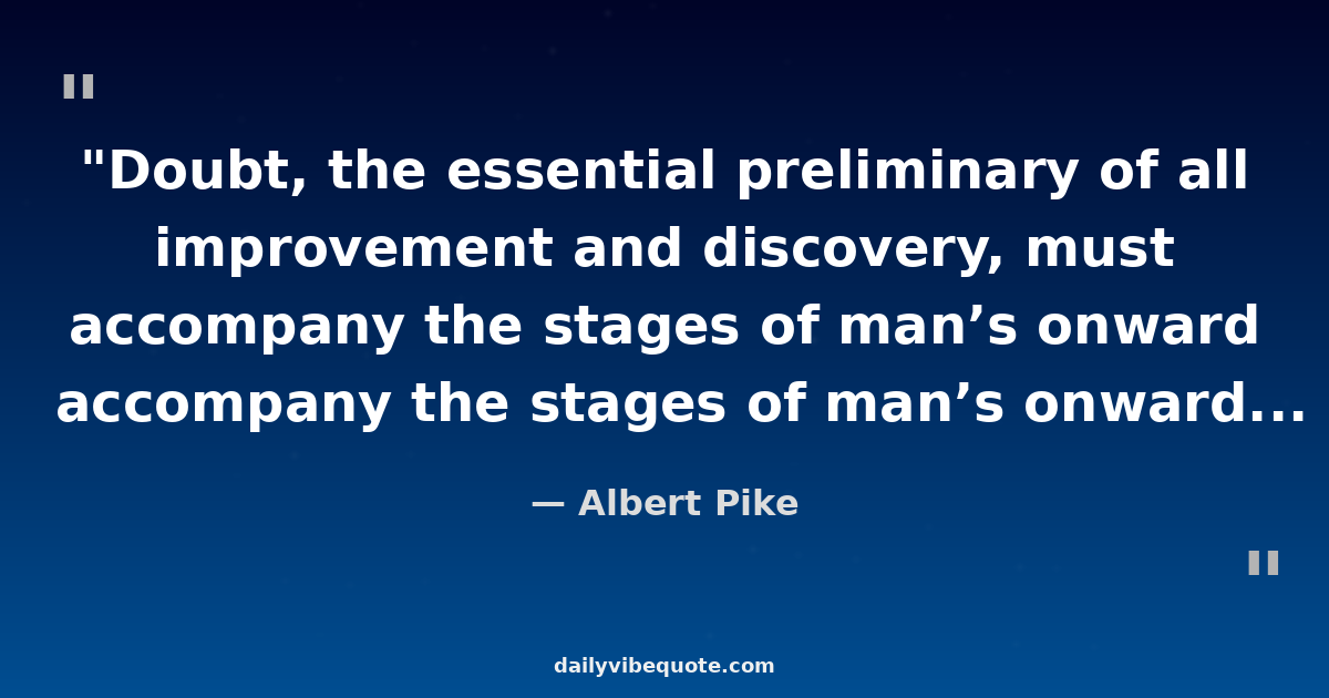 "Doubt, the essential preliminary of all improvement and discovery, must accompany the stages of man’s onward progress. The faculty of doubting and questioning, without which those of comparison and judgment would be useless, is itself a divine prerogative of the reason."