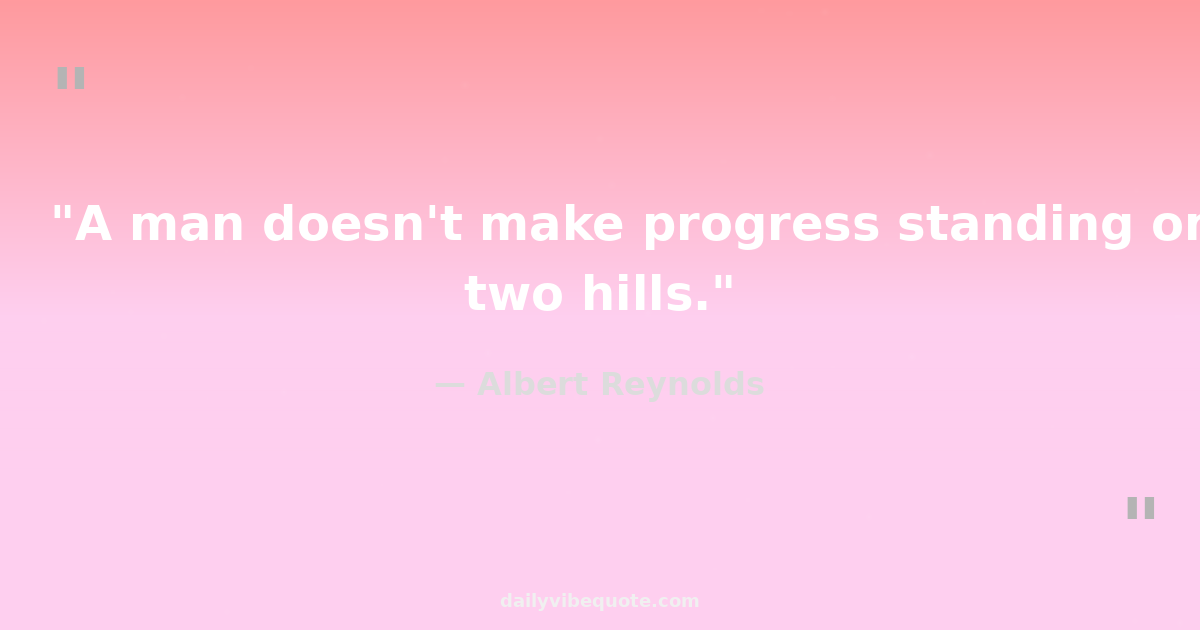 "A man doesn't make progress standing on two hills."
