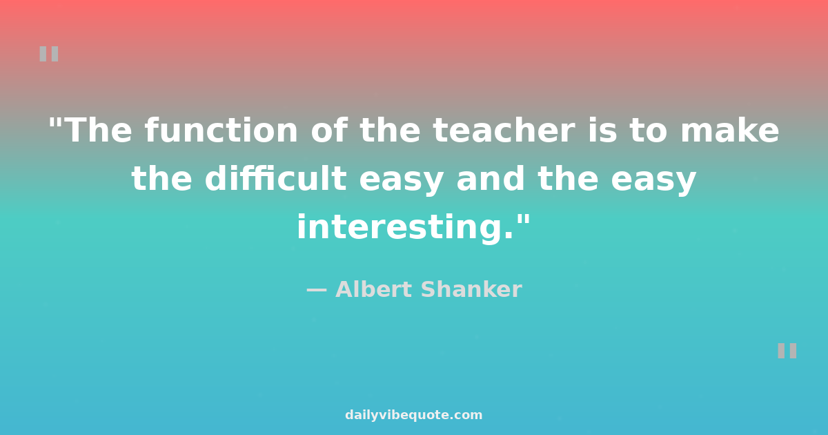 "The function of the teacher is to make the difficult easy and the easy interesting."