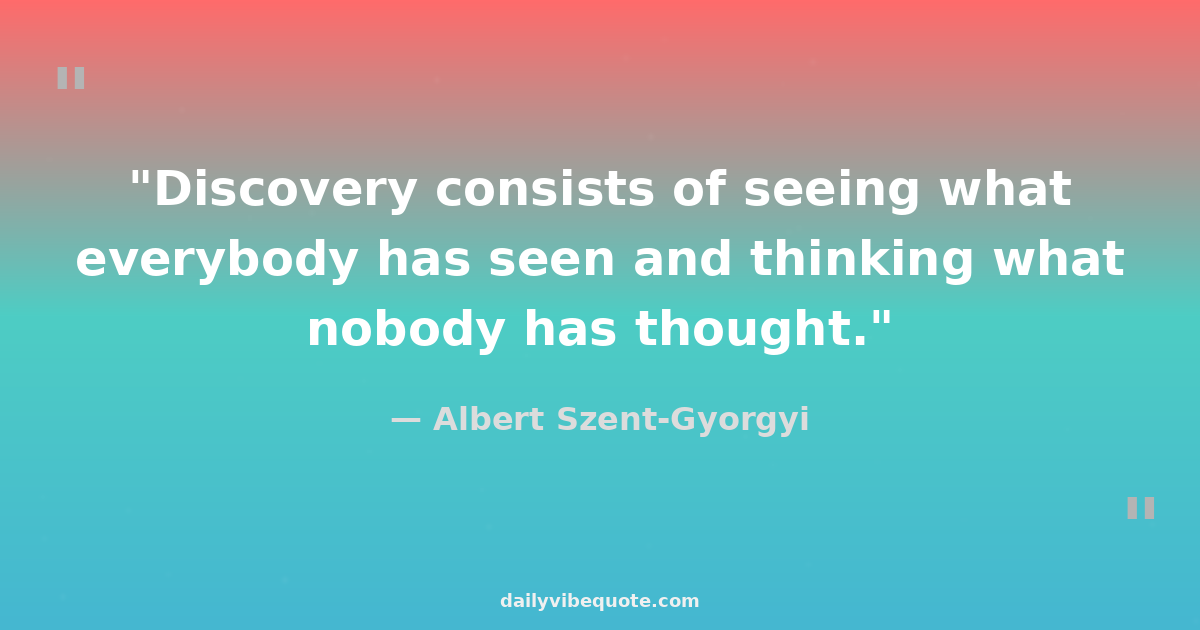 "Discovery consists of seeing what everybody has seen and thinking what nobody has thought."