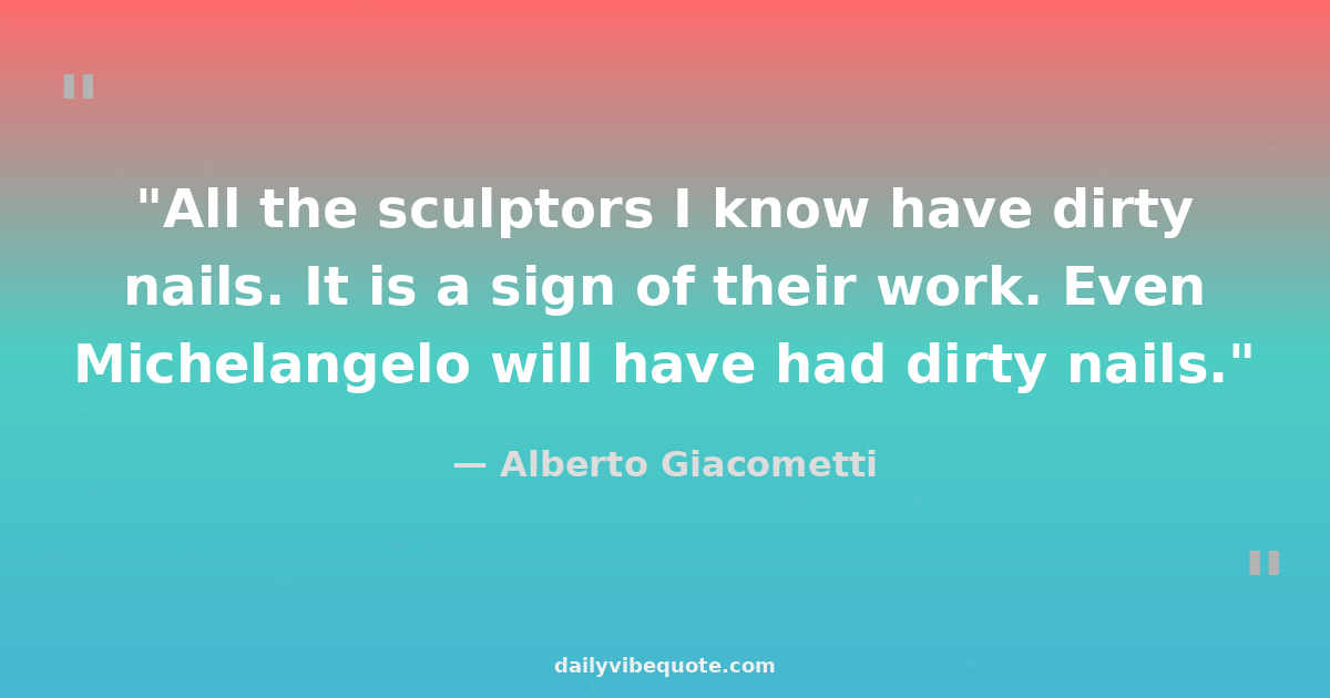"All the sculptors I know have dirty nails. It is a sign of their work. Even Michelangelo will have had dirty nails."