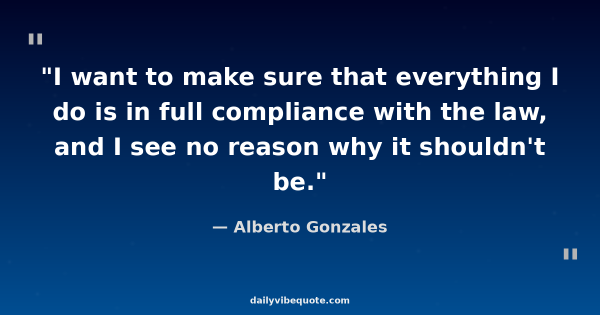 "I want to make sure that everything I do is in full compliance with the law, and I see no reason why it shouldn't be."