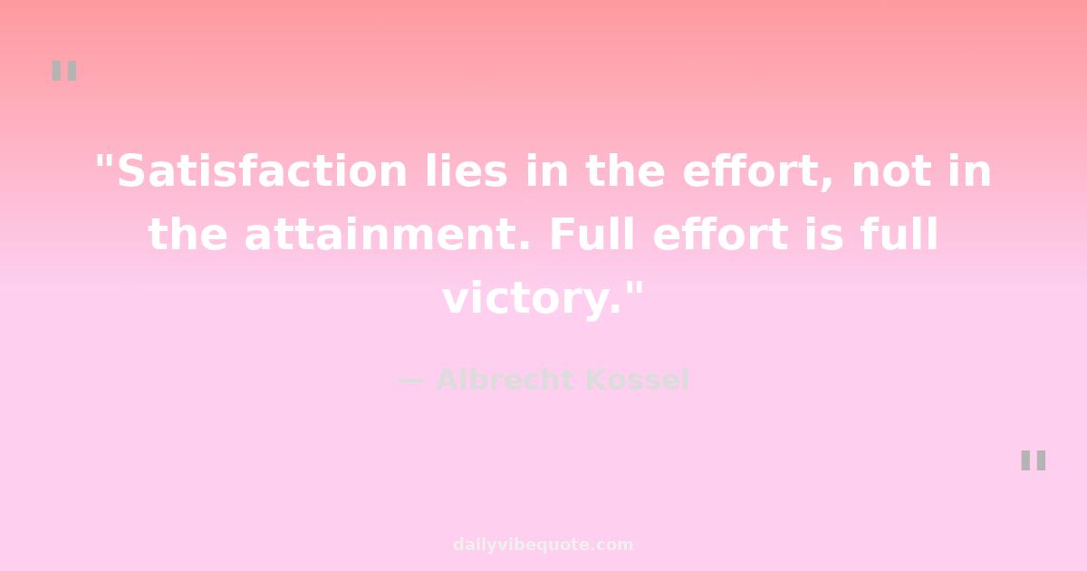 "Satisfaction lies in the effort, not in the attainment. Full effort is full victory."