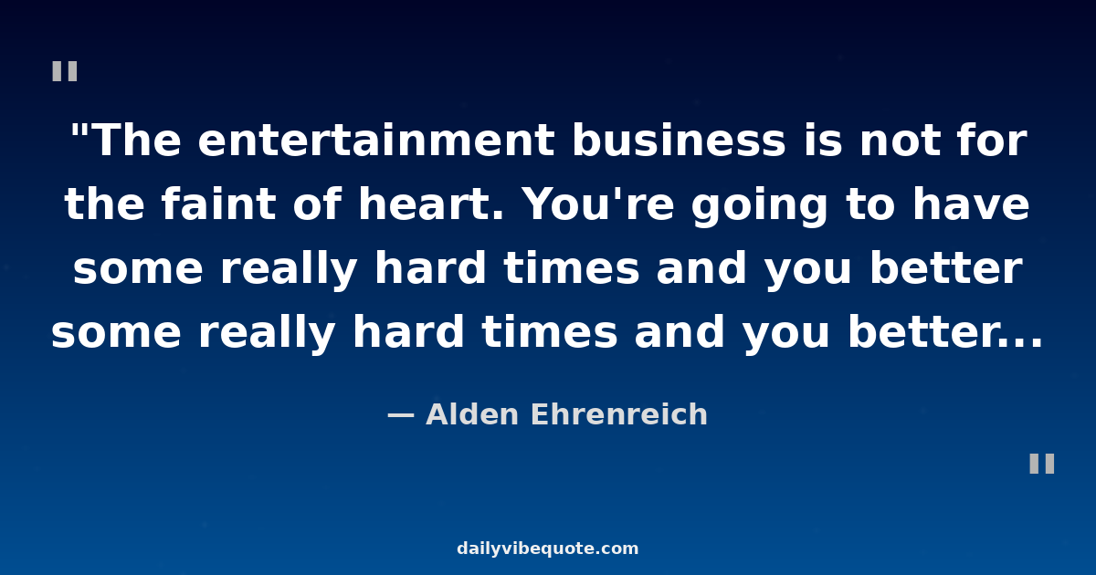 "The entertainment business is not for the faint of heart. You're going to have some really hard times and you better have an unbelievable support system around you."