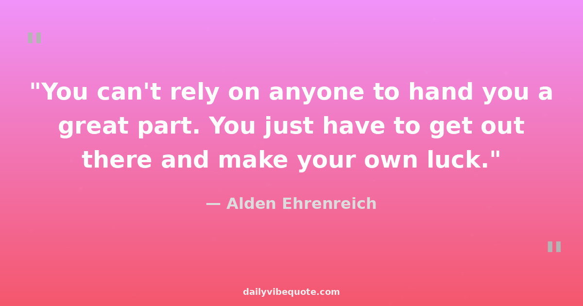 "You can't rely on anyone to hand you a great part. You just have to get out there and make your own luck."