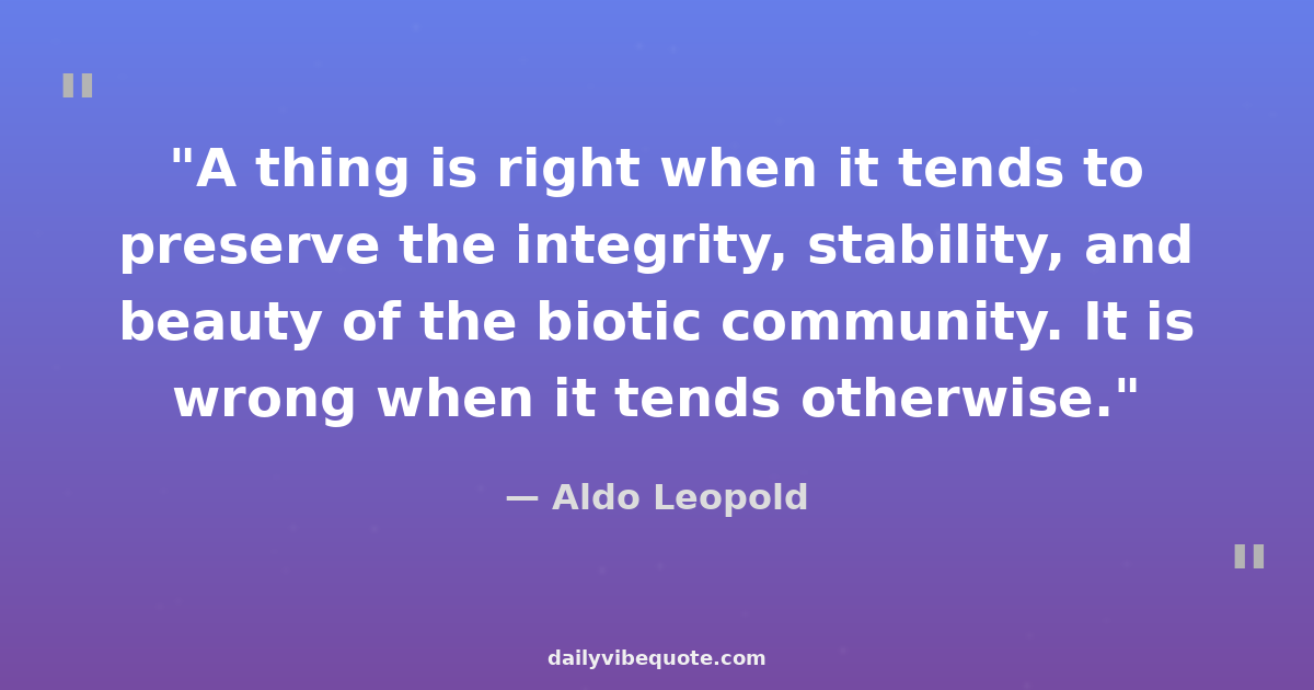 "A thing is right when it tends to preserve the integrity, stability, and beauty of the biotic community. It is wrong when it tends otherwise."