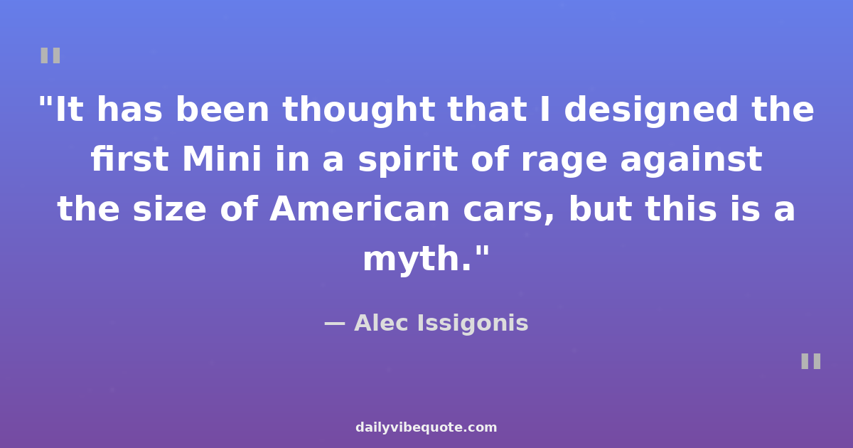 "It has been thought that I designed the first Mini in a spirit of rage against the size of American cars, but this is a myth."