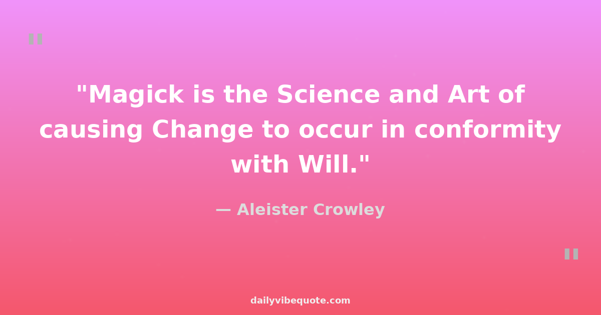 "Magick is the Science and Art of causing Change to occur in conformity with Will."