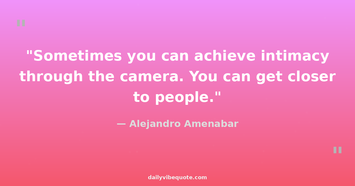 "Sometimes you can achieve intimacy through the camera. You can get closer to people."