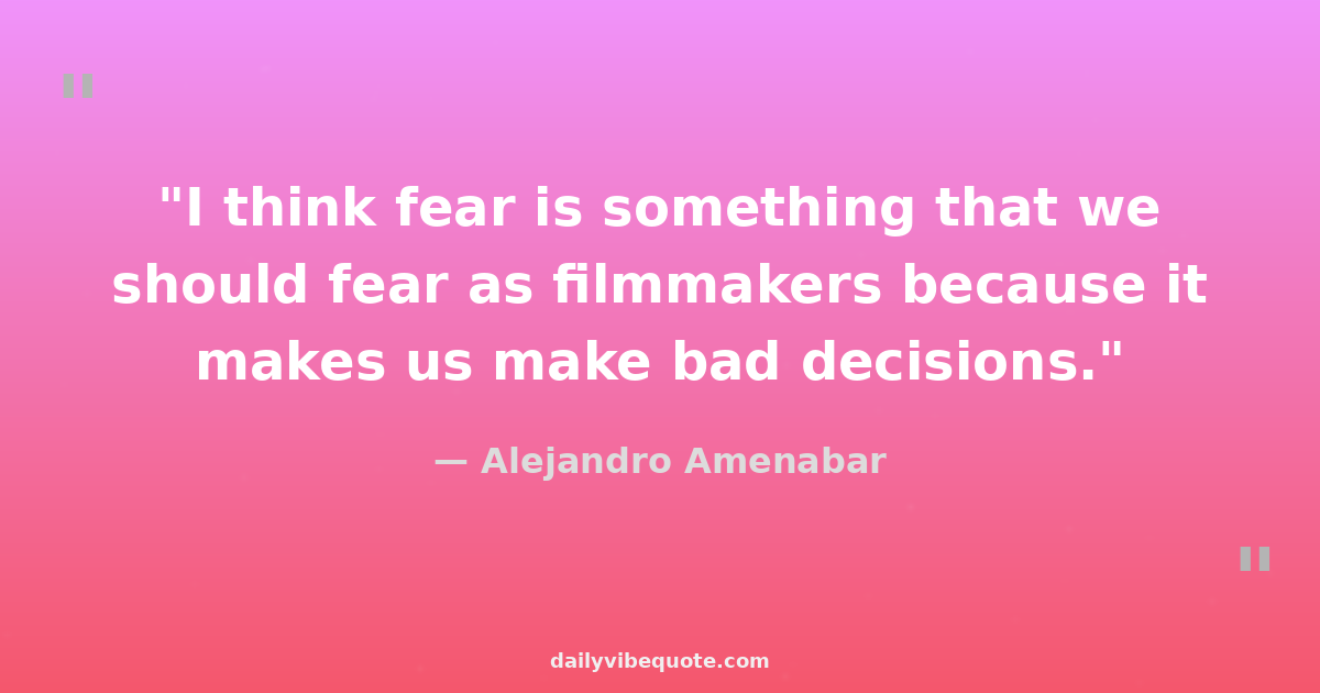 "I think fear is something that we should fear as filmmakers because it makes us make bad decisions."