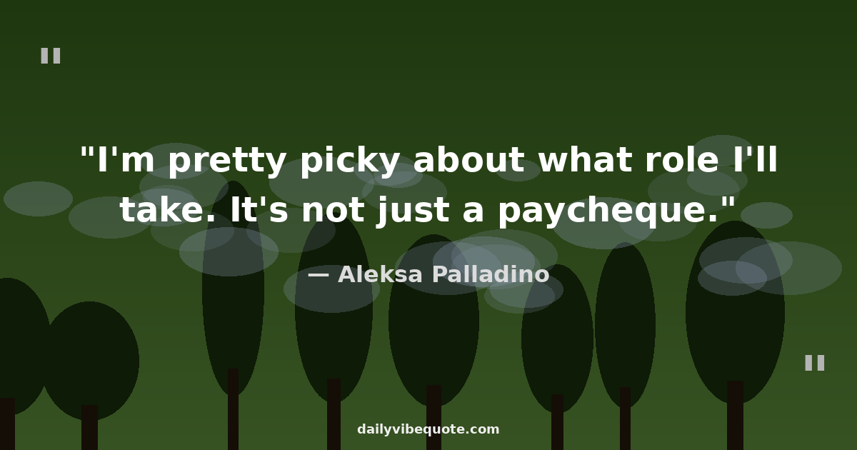"I'm pretty picky about what role I'll take. It's not just a paycheque."