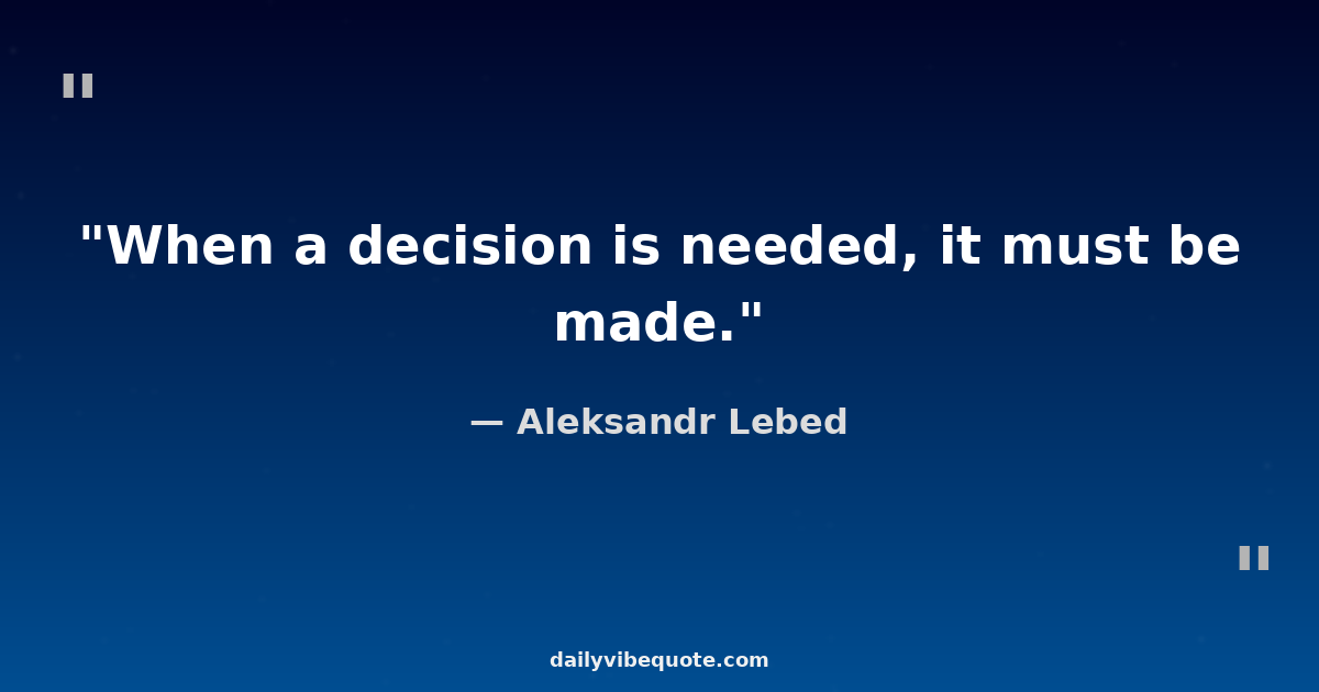 "When a decision is needed, it must be made."