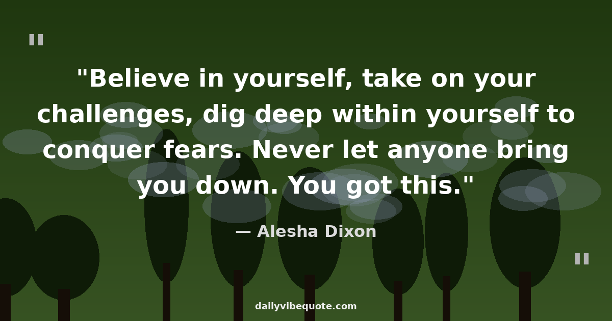 "Believe in yourself, take on your challenges, dig deep within yourself to conquer fears. Never let anyone bring you down. You got this."