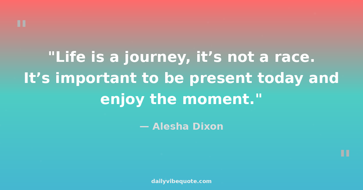 "Life is a journey, it’s not a race. It’s important to be present today and enjoy the moment."