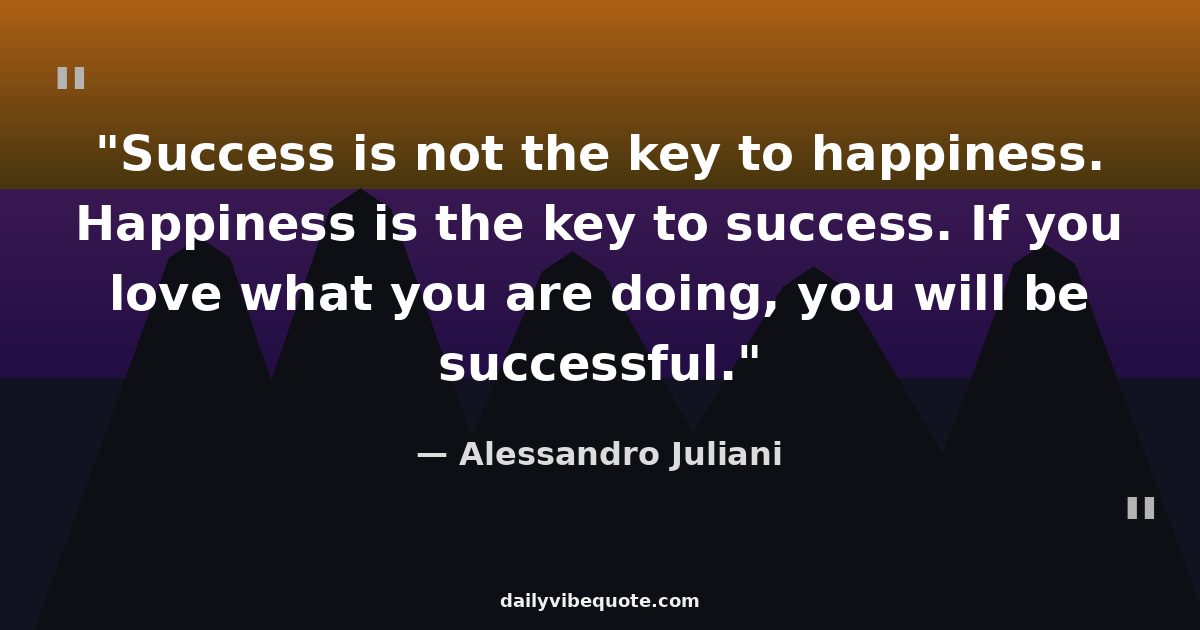 "Success is not the key to happiness. Happiness is the key to success. If you love what you are doing, you will be successful."