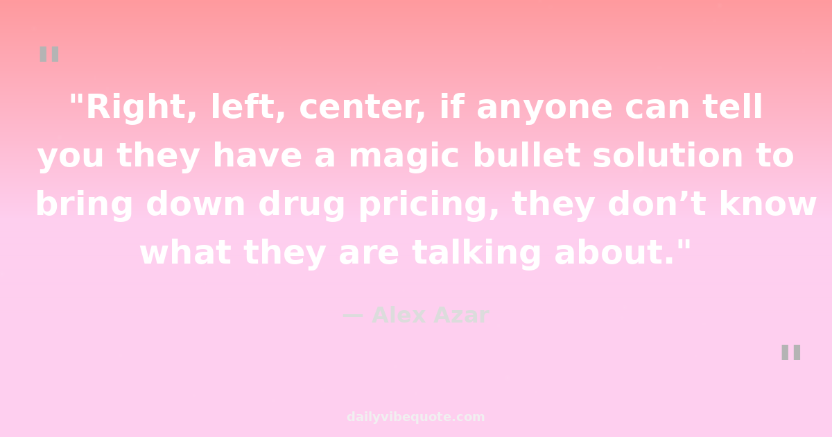"Right, left, center, if anyone can tell you they have a magic bullet solution to bring down drug pricing, they don’t know what they are talking about."