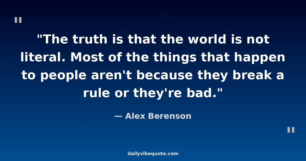 "The truth is that the world is not literal. Most of the things that happen to people aren't because they break a rule or they're bad."