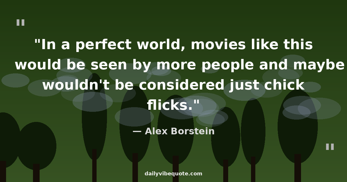"In a perfect world, movies like this would be seen by more people and maybe wouldn't be considered just chick flicks."
