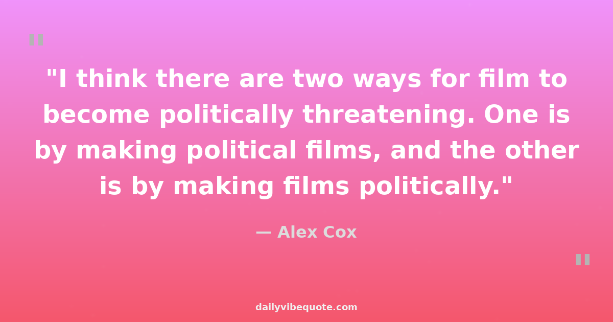 "I think there are two ways for film to become politically threatening. One is by making political films, and the other is by making films politically."