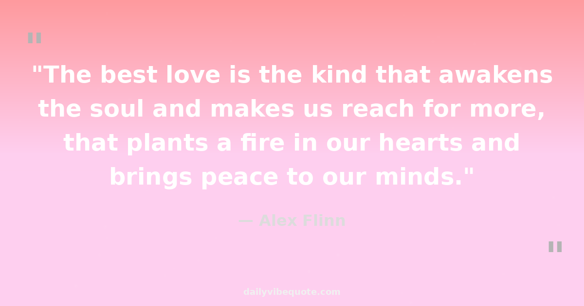 "The best love is the kind that awakens the soul and makes us reach for more, that plants a fire in our hearts and brings peace to our minds."