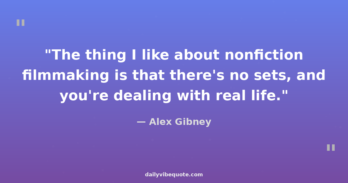 "The thing I like about nonfiction filmmaking is that there's no sets, and you're dealing with real life."