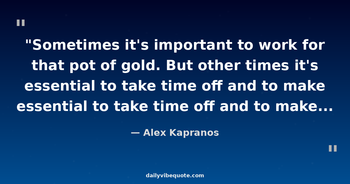 "Sometimes it's important to work for that pot of gold. But other times it's essential to take time off and to make sure that your most important decision in the day simply consists of choosing which color to slide down on the rainbow."