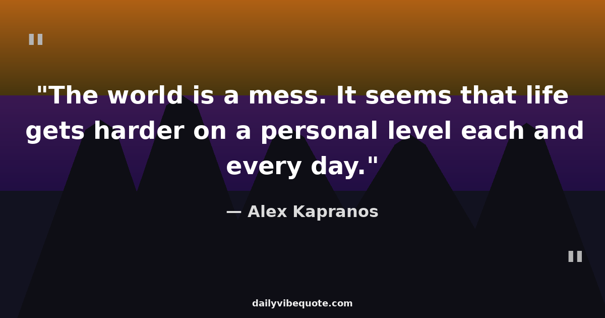 "The world is a mess. It seems that life gets harder on a personal level each and every day."