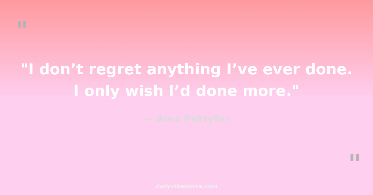 "I don’t regret anything I’ve ever done. I only wish I’d done more."