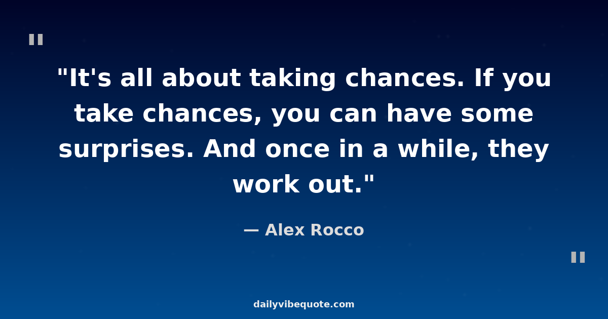 "It's all about taking chances. If you take chances, you can have some surprises. And once in a while, they work out."