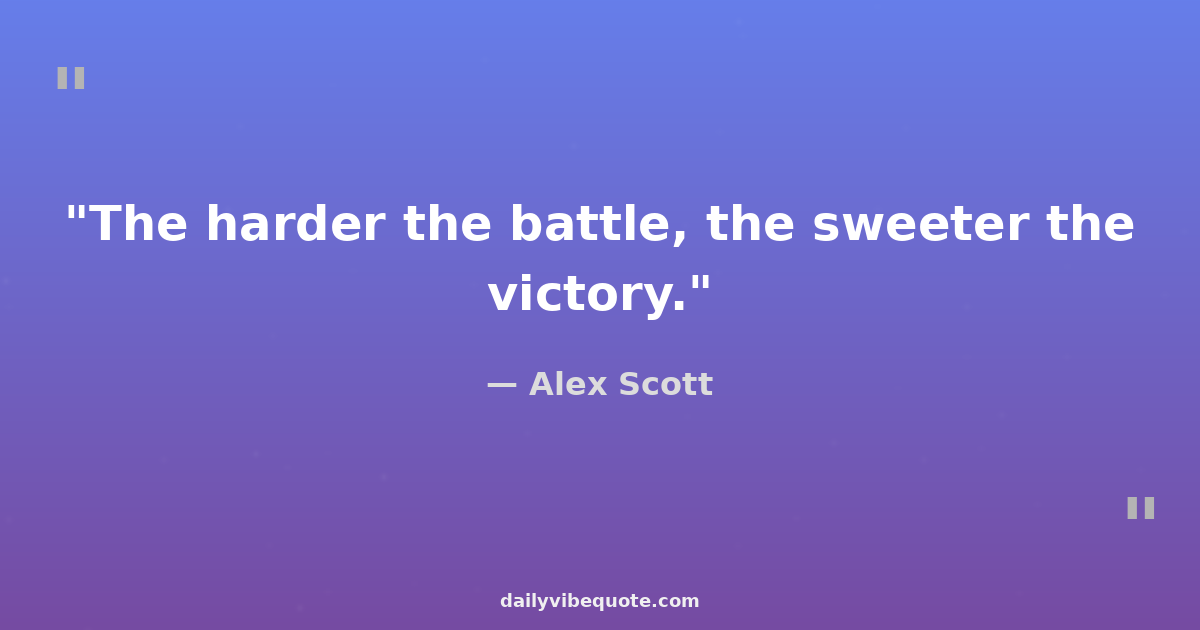"The harder the battle, the sweeter the victory."